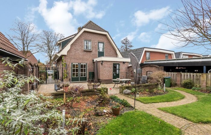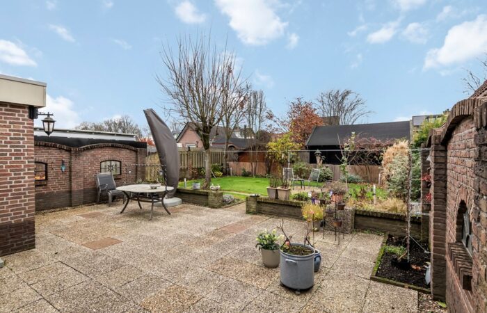 De achtertuin is gesitueerd op het noordwesten: een ideale ligging voor wie graag in de middag en avond van de zon geniet. De tuin is verzorgd aangelegd en biedt voldoende ruimte voor een gezellige zithoek, een eettafel en eventueel speeltoestellen. Door de ligging achter de woning ervaar je hier veel privacy en rust. Via de zij- en achterzijde is de tuin goed bereikbaar, onder andere via de bijkeuken. Aan de zijkant van de woning is bovendien ruimte om een auto te parkeren op eigen terrein. Zo heeft u altijd een extra parkeerplek naast de royale inpandige garage in het souterrain.